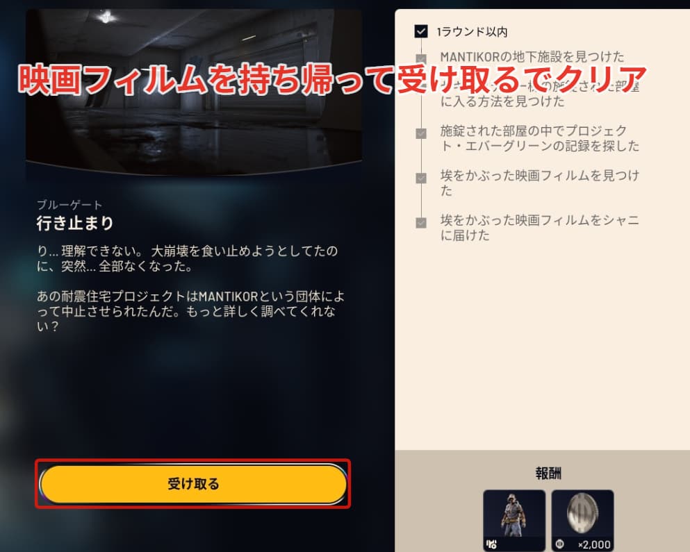 帰還したらシャニに映画フィルムを渡せばクリアです。