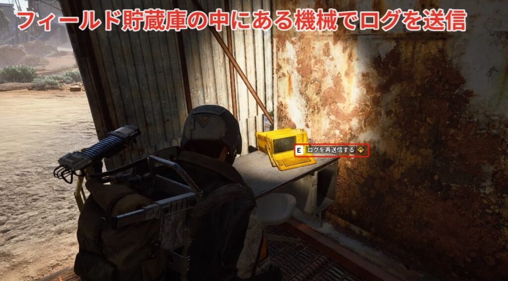 次にフィールド貯蔵庫内にある机に機械が置いてあるのでログを再送信しましょう。