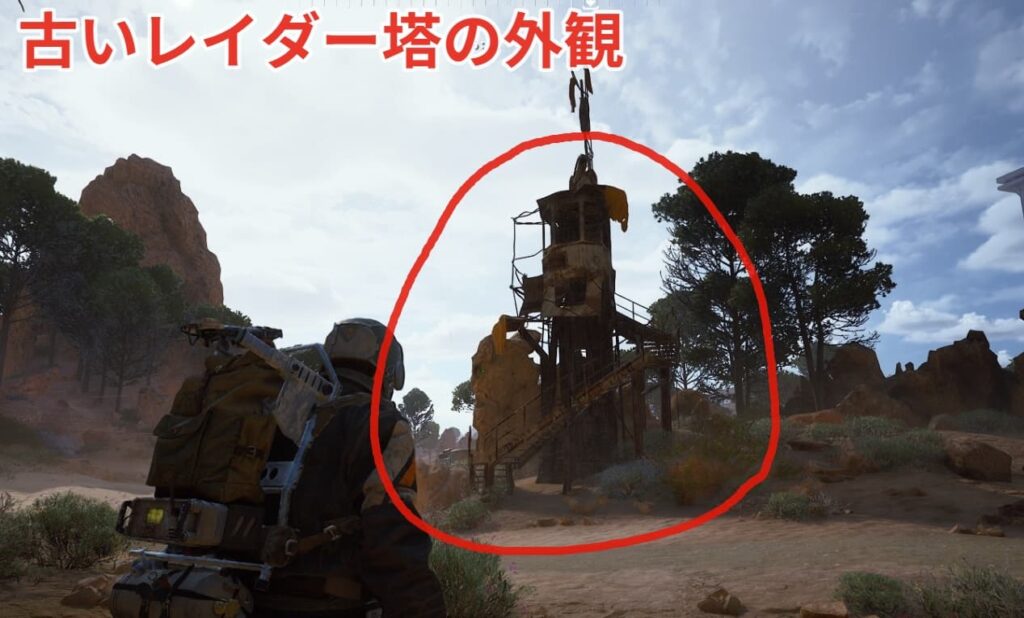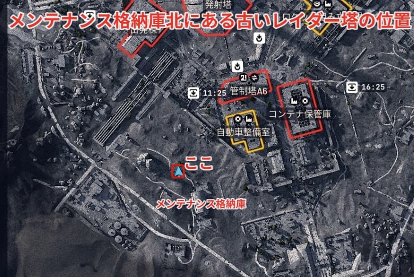 次にメンテナンス格納庫の北西にある古いレイダー塔に向かいましょう。