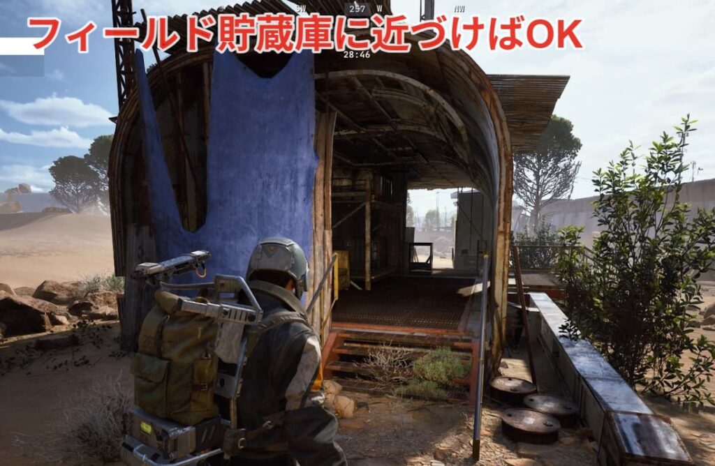 まずはコンテナ保管庫から見て南東にあるフィールド貯蔵庫に向かいましょう。