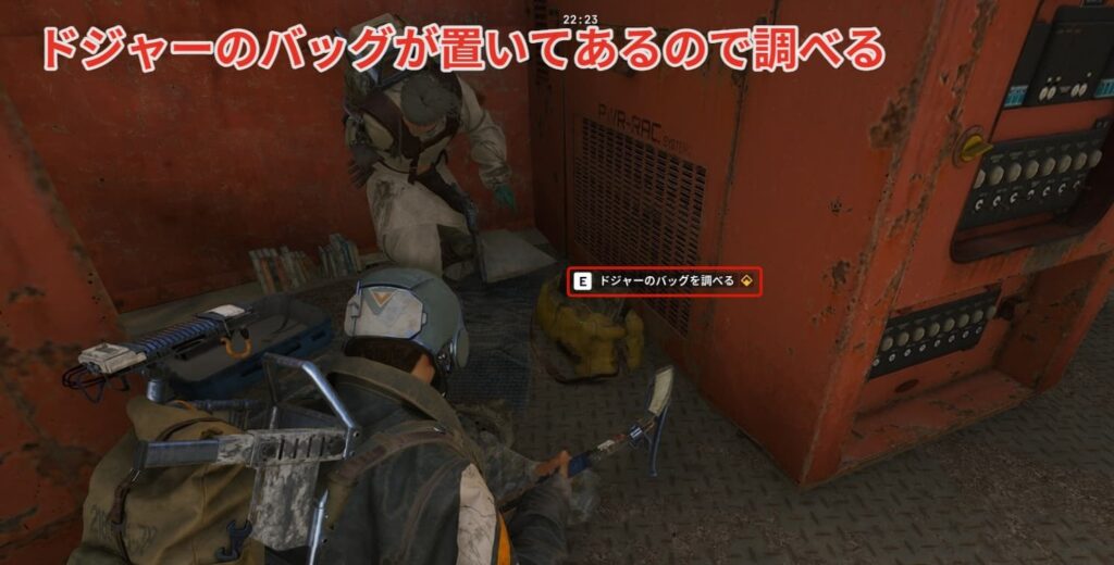 ドジャーのバッグが赤い機械の横に置いてあるので調べましょう。