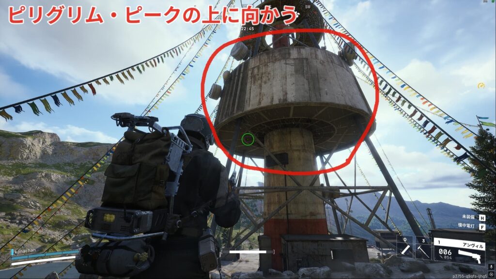 大きなアンテナ塔があるので、ジップラインで中段の広間に向かいます。