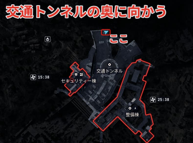 - ①交通トンネルでドジャーの物品隠し場所を探す