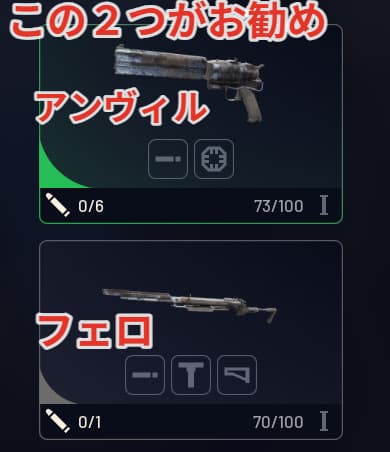 武器はアンヴィル・フェロがお勧めです。(特にアンヴィル)