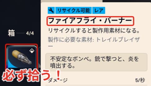 ファイアフライを倒したら必ずファイアフライ・バーナーを拾っておきましょう。