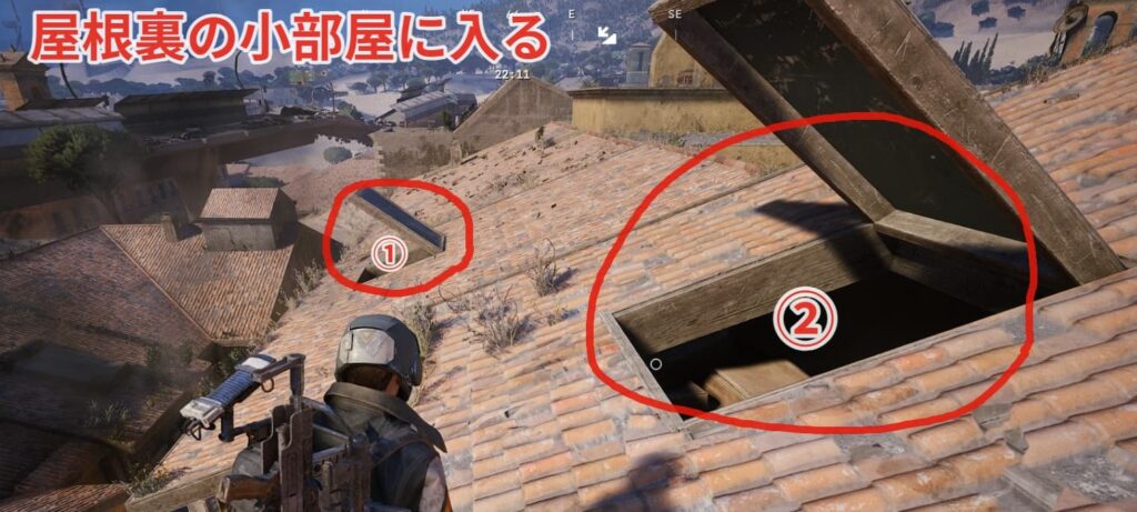 ※②は下からジップラインで登って入ることが出来るが、①は屋根上からしか行けないので注意!