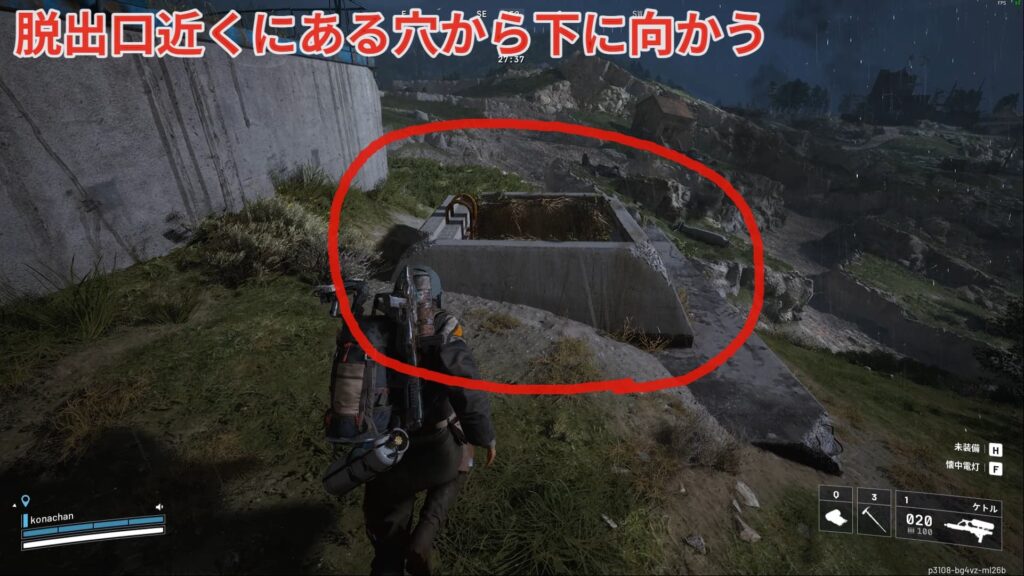 近くにある脱出口の横に小さな穴があるのでそこから下に向かいましょう。