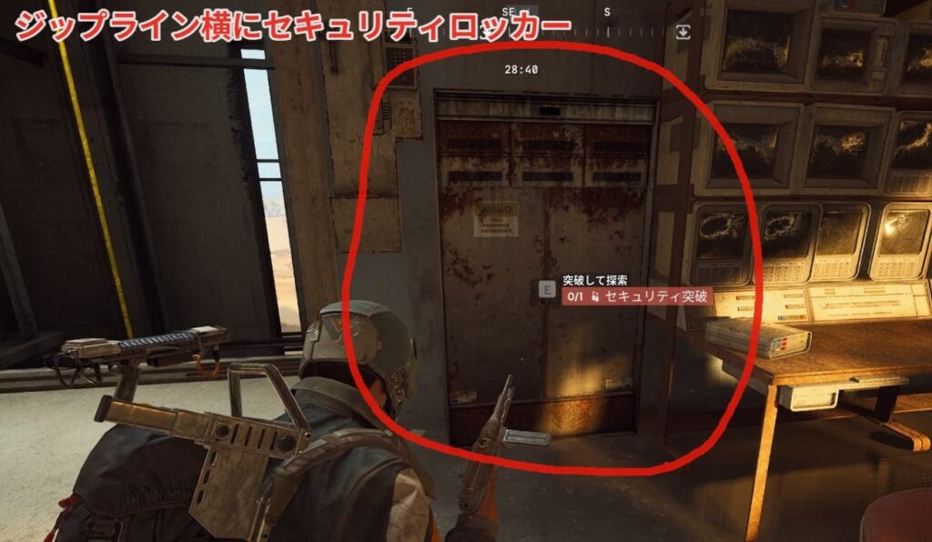 ジップラインを登って壁にセキュリティロッカーが置いてあります。