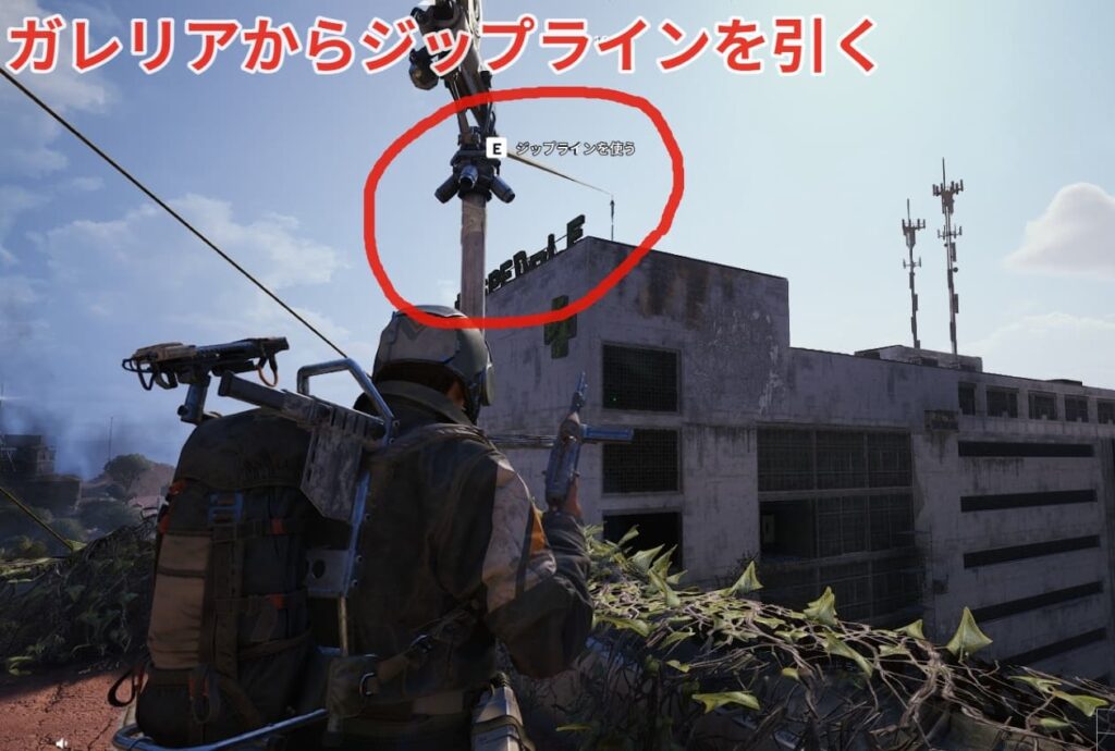 ジップラインを持参してガレリア屋上から病院の屋上まで向かおう!