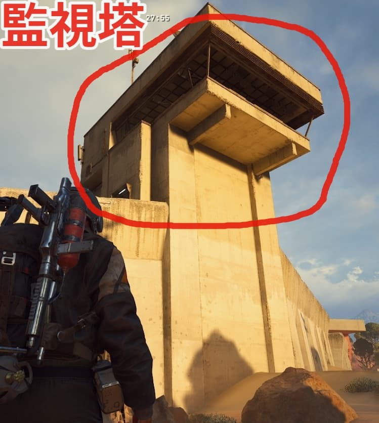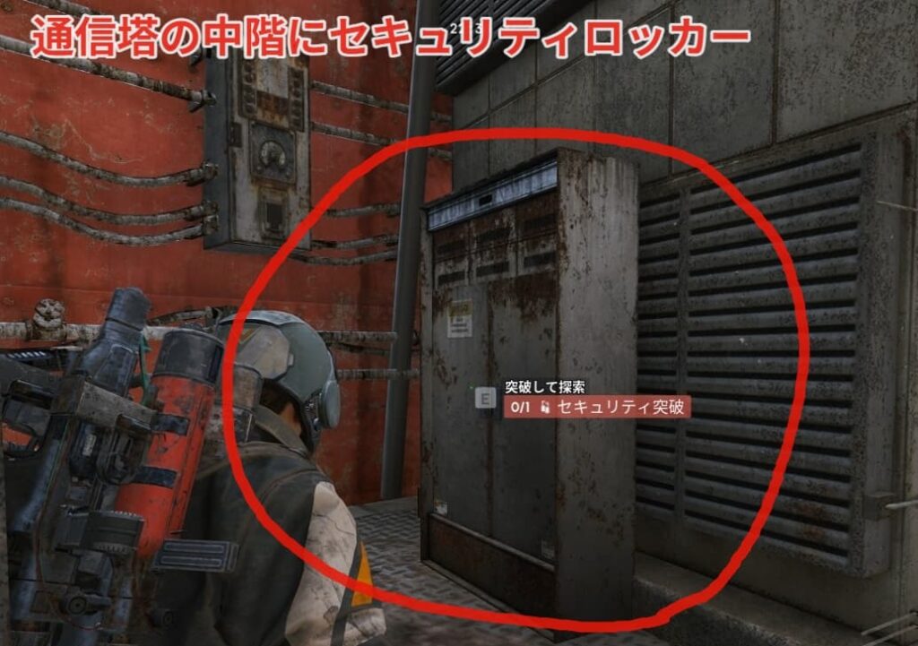 宇宙港にある壁に配置されている監視塔の最上階にセキュリティロッカーが置かれています。
