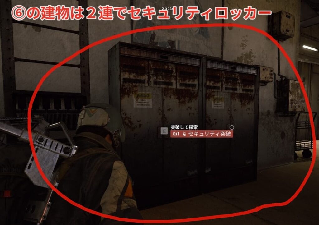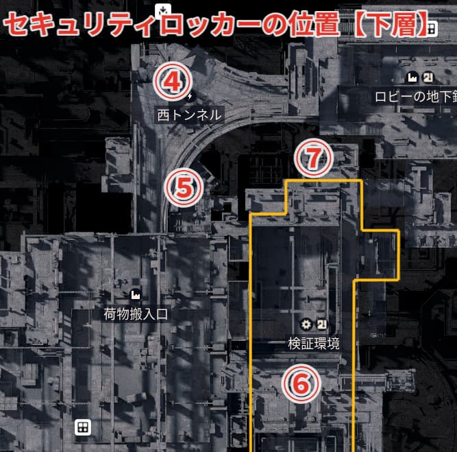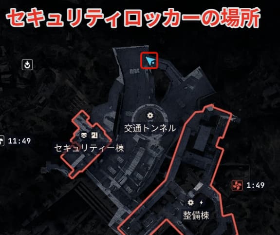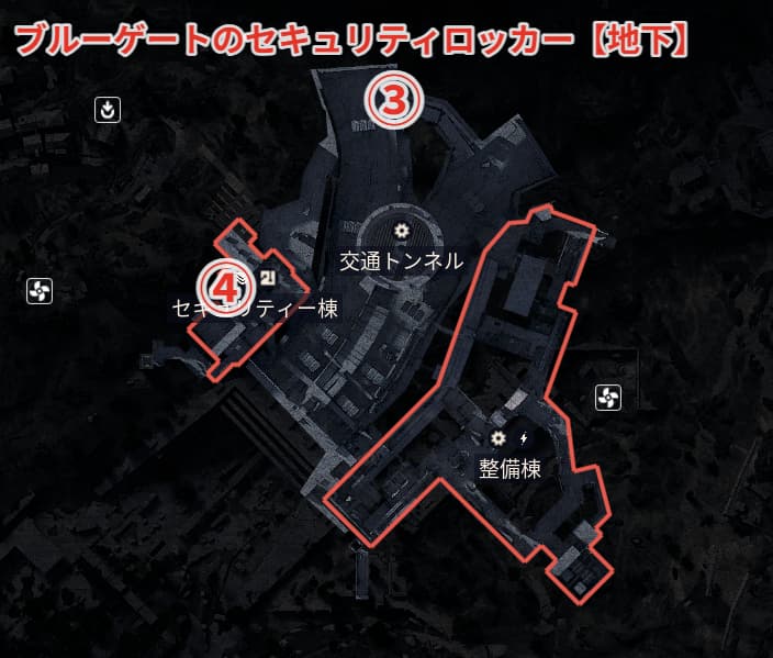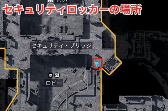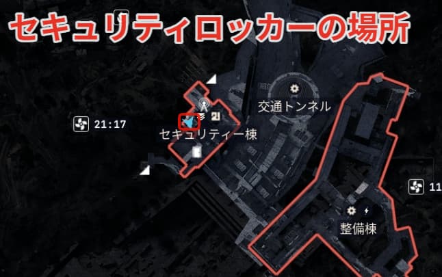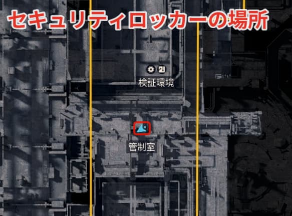 最後のセキュリティロッカーの場所は地下のセキュリティー棟にあります。