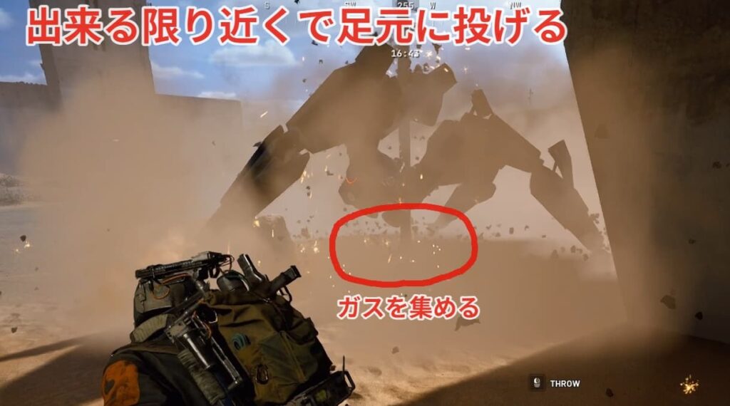 ダメージ自体は低いですが、大型ARCの足元にガスが集まるよう投げる事で大ダメージを与える事ができます。