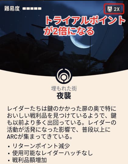 獲得ポイントが2倍になる【夜襲・電磁嵐・隠された宝物庫】が特にお勧めです。
