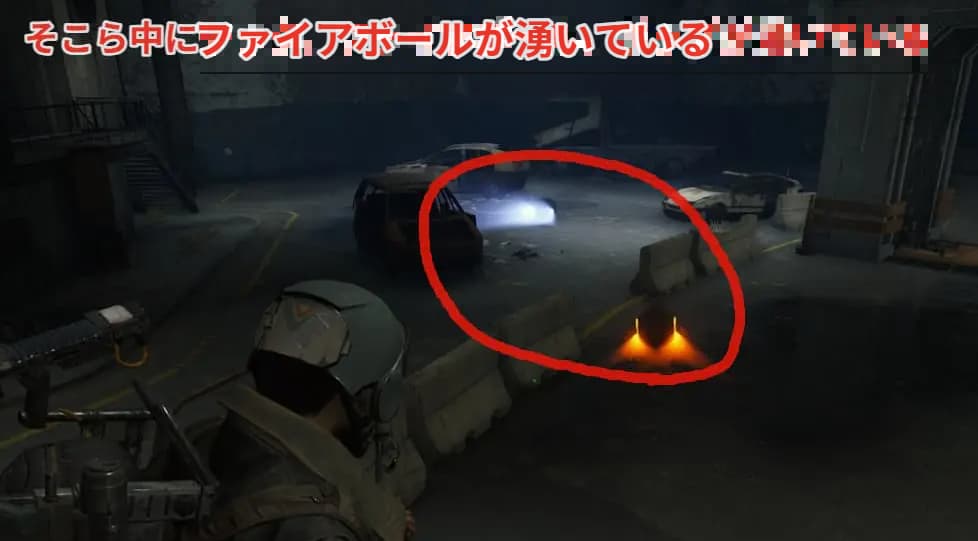 交通トンネル内と整備棟の通路を歩いていればファイアボールがいるので狩ってポイントを稼ぎましょう。