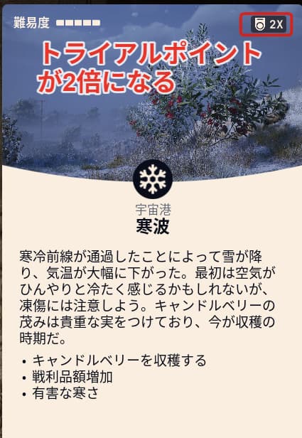 獲得ポイントが2倍になる【夜襲・電磁嵐・寒波】が特にお勧めです。