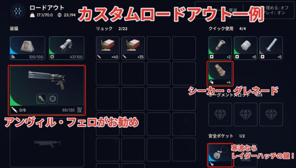 - カスタムor無料ロードアウト:カスタムロードアウト推奨