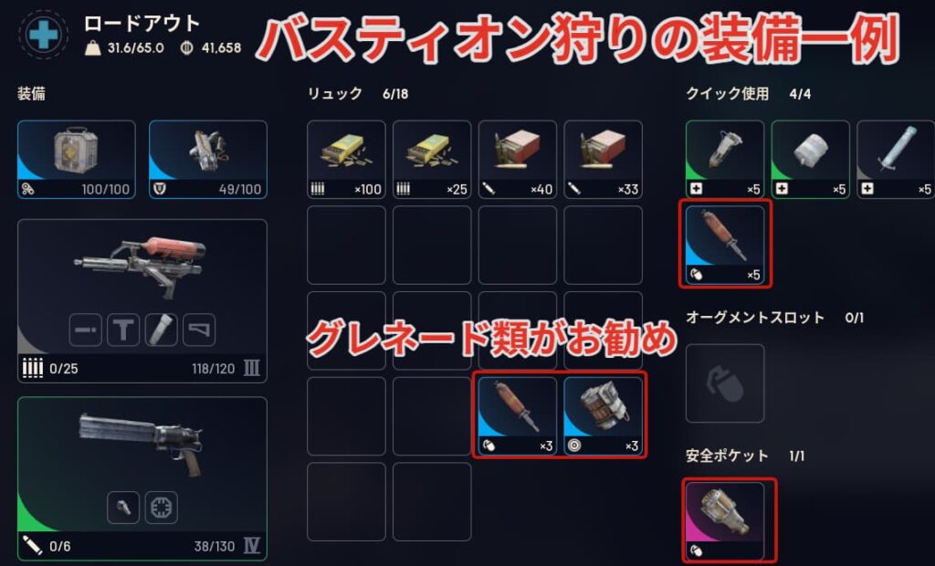 装備はグレネード類をポンポン投げて破壊するのが比較的安全なのでそちらをお勧めします!