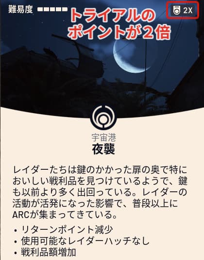 - お勧めマップ:宇宙港(夜襲・電磁嵐など×2倍推奨)