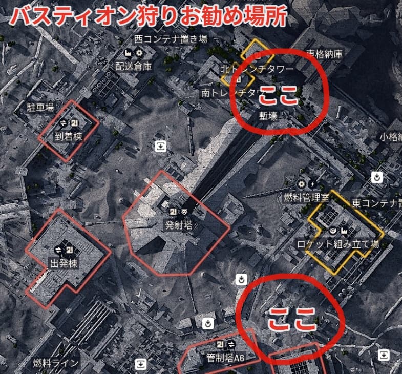 バスティオンにダメージを与えるのお勧めマップは宇宙港です。
