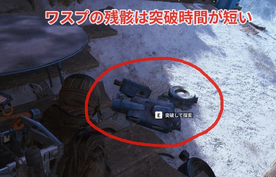 残骸は大きさで突破にかかる時間が変化するので、ワスプの残骸の様な小さい残骸を見つけたら積極的に狙いましょう!