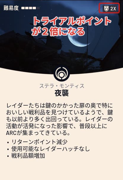• トライアルの難易度:低(初心者でも挑戦できるが帰還が難しい)