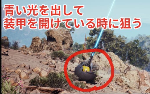 ARC偵察機が青い光を出す際に装甲を開けるのでそこを狙いましょう。