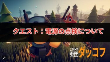 お疲れ様です。こなちゃんです! エスケープフロムダッコフの【クエスト:電源の点検】について紹介していきます。 クエスト:電源の点検について 電源の点検場所は農家右にある青い建物の近くにあります。 スパ […]