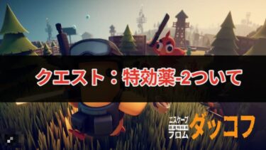お疲れ様です。こなちゃんです! エスケープフロムダッコフの【クエスト:特効薬-2】について紹介していきます。 クエスト:特効薬-2ついて 手痛特効薬は農家から左下にある緑の家の中にあります。 机に置い […]
