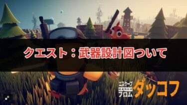 お疲れ様です。こなちゃんです! エスケープフロムダッコフの【クエスト:武器設計図】について紹介していきます。 クエスト:武器設計図ついて MF設計図の破片は画像の①②③の場所にあるダンプカー後部に置い […]