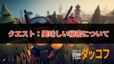 お疲れ様です。こなちゃんです! エスケープフロムダッコフの【クエスト:電源の点検】について紹介していきます。 クエスト:美味しい秘密について 給水塔の場所は製材所の大きい建物の左にあります。 近づいて […]