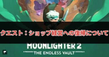 お疲れ様です。こなちゃんです! 今回はムーンライター2(Moonlighter 2)のチュートリアルクエスト『ショップ経営への復帰』について紹介していきます。 クエスト:ショップ経営への復帰について […]