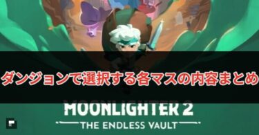 お疲れ様です。こなちゃんです! 今回はムーンライター2(Moonlighter 2)のダンジョンで選ぶ各マスの内容をまとめていきます。 ↑これ ダンジョンで選ぶ各マスの内容まとめ ①宝箱 宝箱は名前の […]