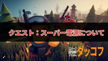 お疲れ様です。こなちゃんです! エスケープフロムダッコフの【スーパー電源】について紹介していきます。 クエスト:スーパー電源について スーパー電源は倉庫エリアから農場町へ来る洞窟付近に埋っています。 […]