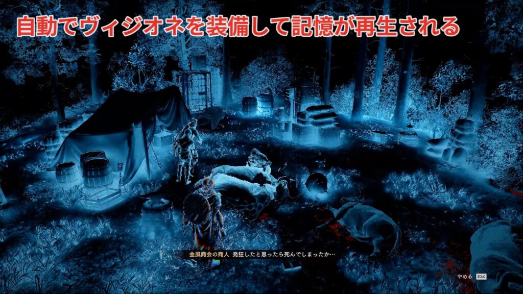 習得中のゲージが溜まれば自動でヴィジオネを装備して記憶が再生されます。