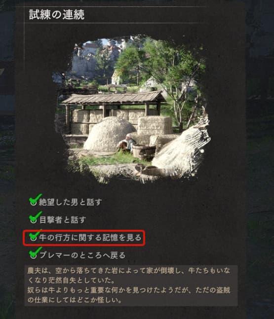 第2章の試練の連続で『牛の行方に関する記憶を見る』方法について