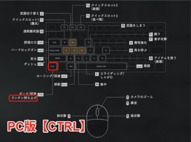 PC版は【CTRL】にランタン持ち上げが割り当てられています。