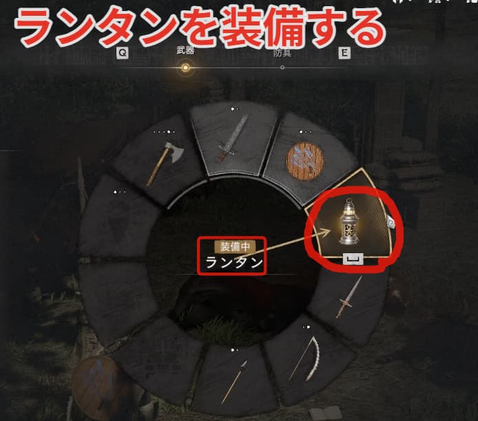 まずはランタンを装備しましょう。