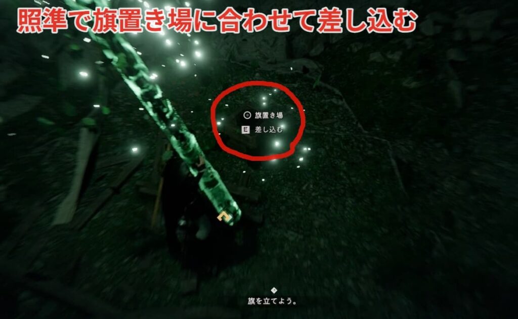 すぐ横の旗置き場に照準を合わせて差し込めばクリアです。