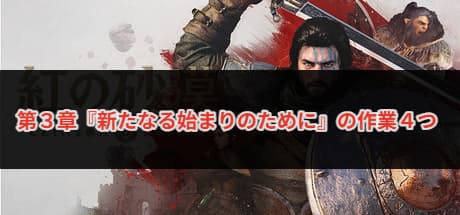 今回は紅の砂漠(CrimsonDesert)の第3章のクエスト『新たなる始まりのために』の4つの作業について紹介していきます。