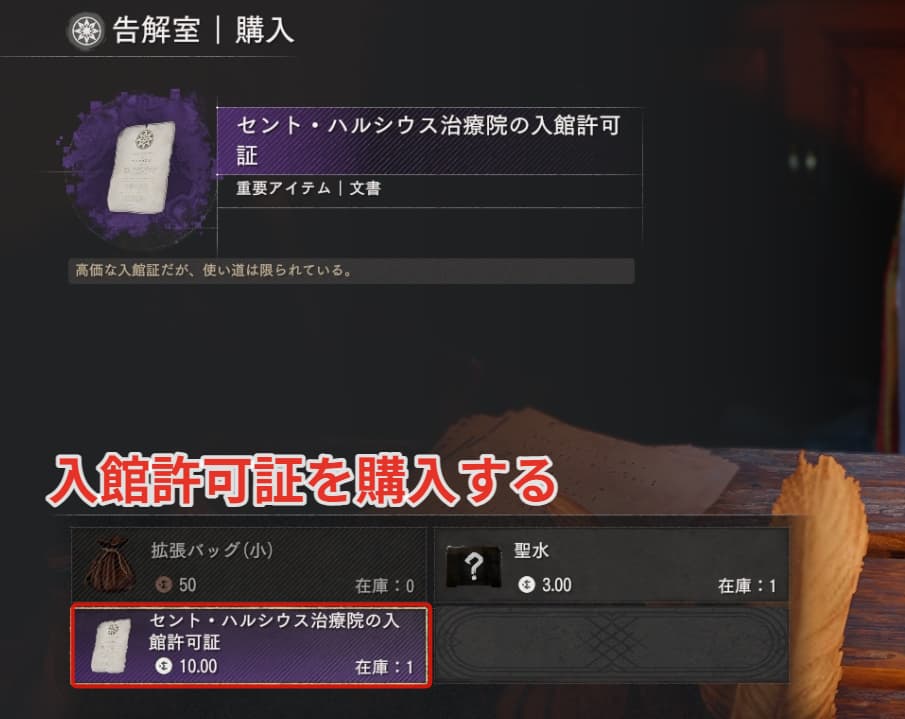 - ①エルナンドの教会で通行証を購入する【銀貨10】