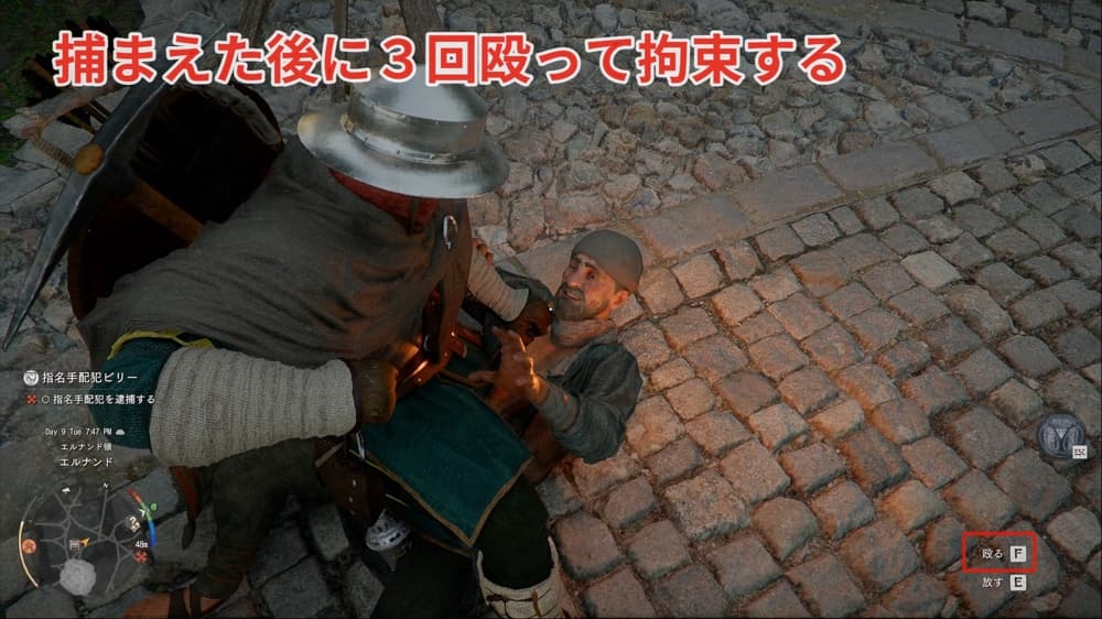 ビリーは戦闘を仕掛けてはこないので逃げた場合は捕まえた後に3回殴って拘束しましょう。