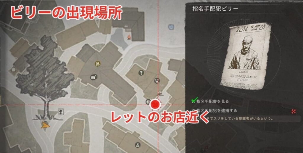 ビリーは最初の街エルナンドのレットのお店近くで出現します。