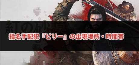今回は紅の砂漠(CrimsonDesert)でエルナンドの指名手配犯『ビリー』の出現場所・時間帯を紹介していきます。