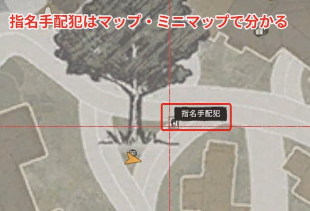指名手配犯はプレイヤーの近くにいるとマップ・ミニマップに表示されます。
