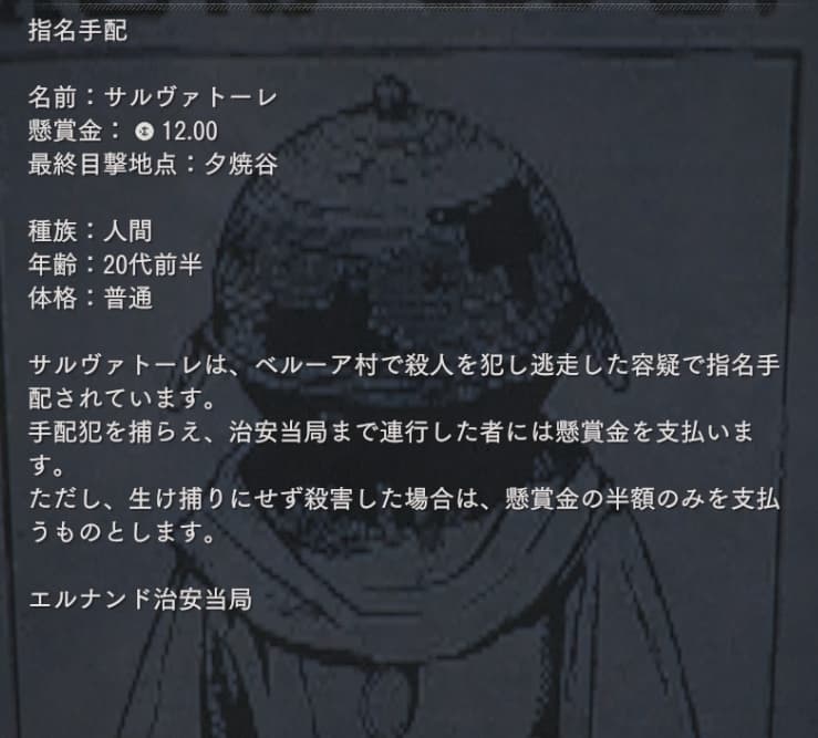 指名手配犯『サルヴァトーレ』の報酬