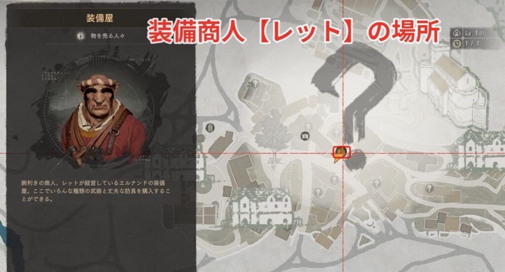 次に装備商人【レット】を見つけてクエストを受けましょう!