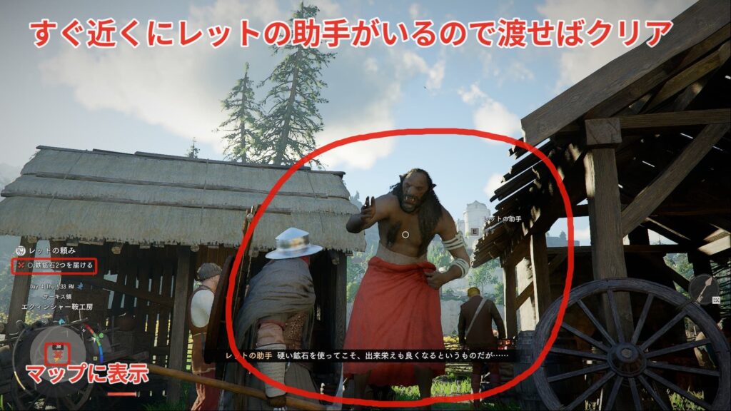 - ⑤レットの助手に鉄鉱石を2つ渡す