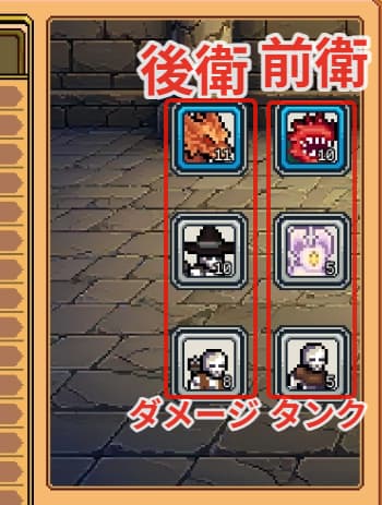 必ず前衛にタンク・後衛にダメージを配置しましょう。