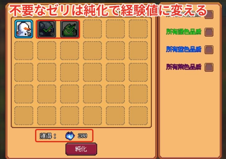 【5】不要なゼリが純化で経験値に変えて他に還元しよう!