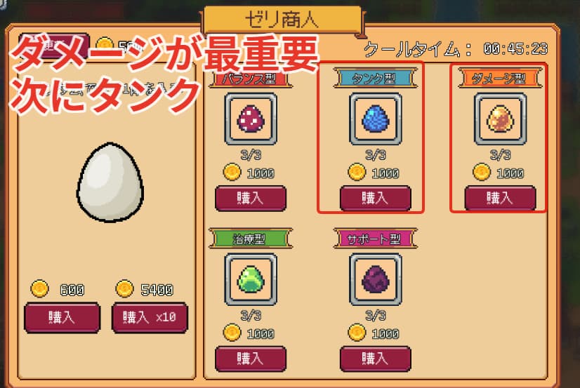 【2】序盤はダメージ型・タンク型を優先して購入して起用しよう!